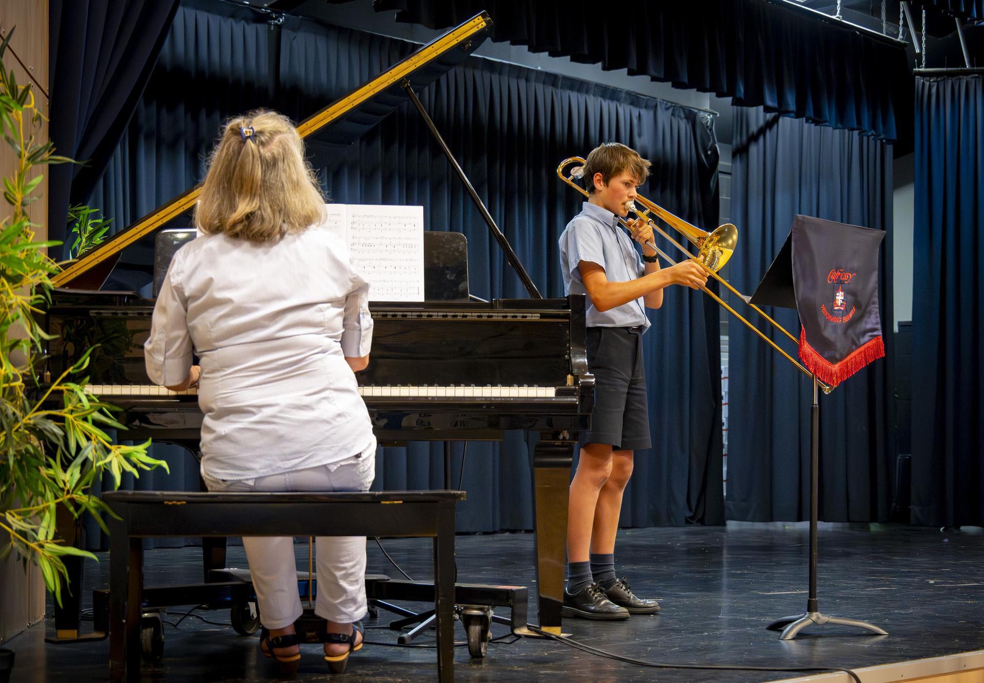 The event opened with a series of pre-concert performances, setting the tone with solo works and polished ensembles. Audiences were treated to elegant piano pieces by Aryan Shahmohammadi, Isabella Lewis, Hudson Clunas and Hugh Honeyfield, along with expressive dance solos from Mikayla Williamson and Chelsea Ryan. The energy and rhythm of the XP Percussion Ensemble added a vibrant touch, while Jeremy Scott’s trombone solo showcased technical skill and stage presence.