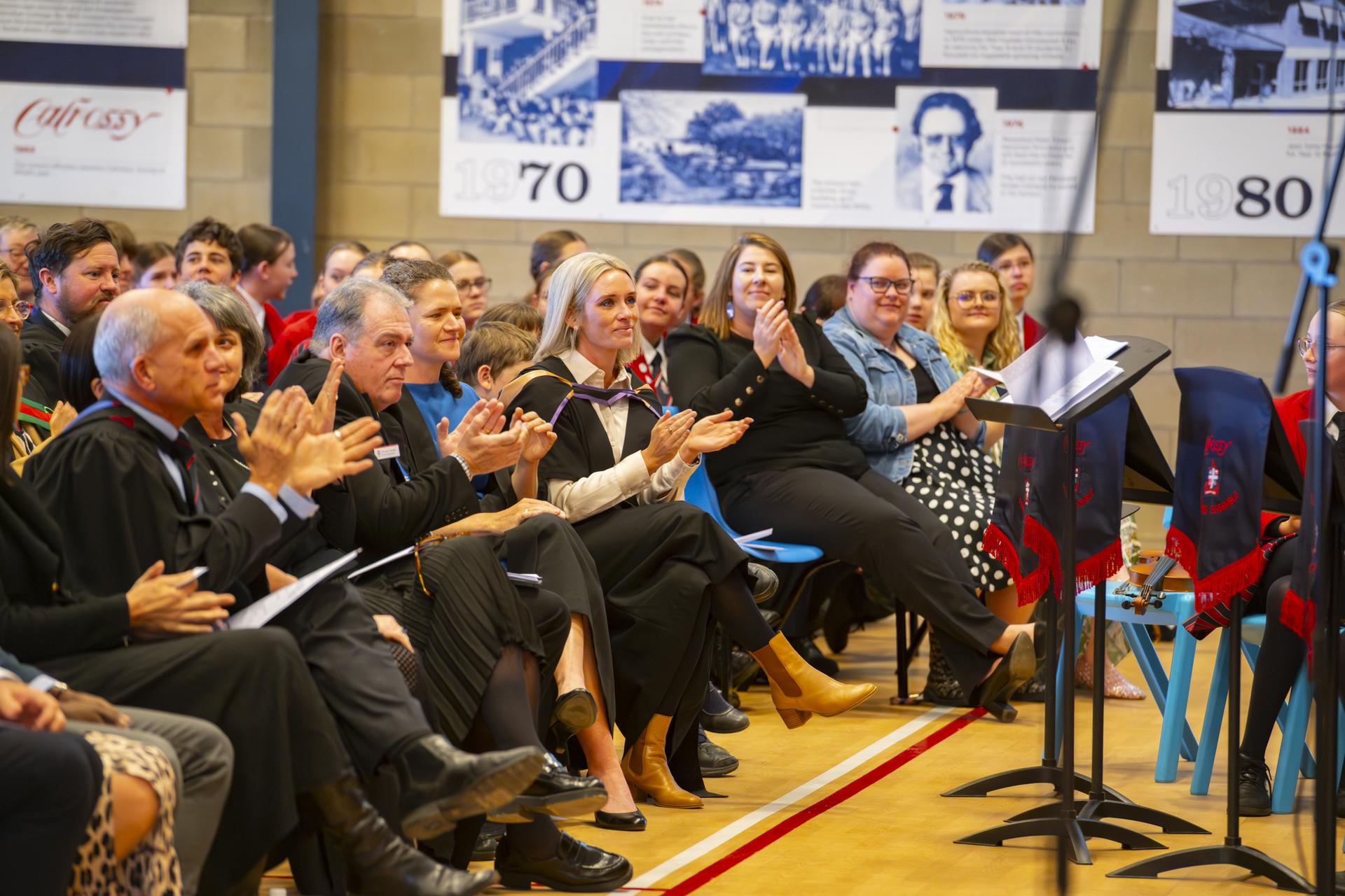 Graduation Portfolios were presented by Mr David Smith, Mrs Kelli Cato, Mrs Emma O’Connor and Miss Julia Boland, recognising each student’s contribution and journey at Calrossy. The Performing Ensemble then played The Irish Blessing as the school community joined in song.