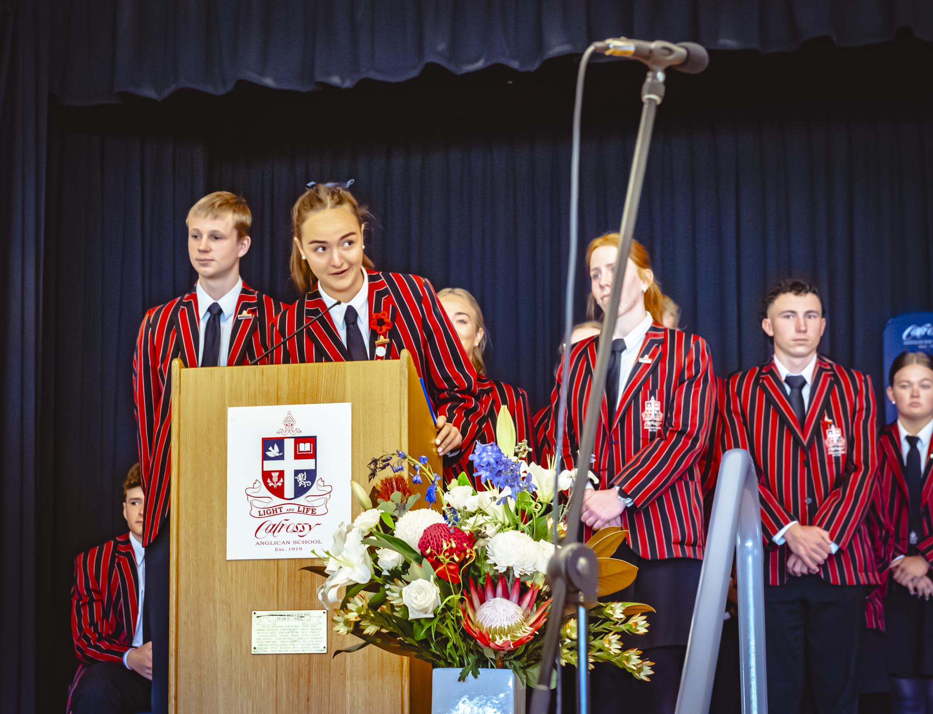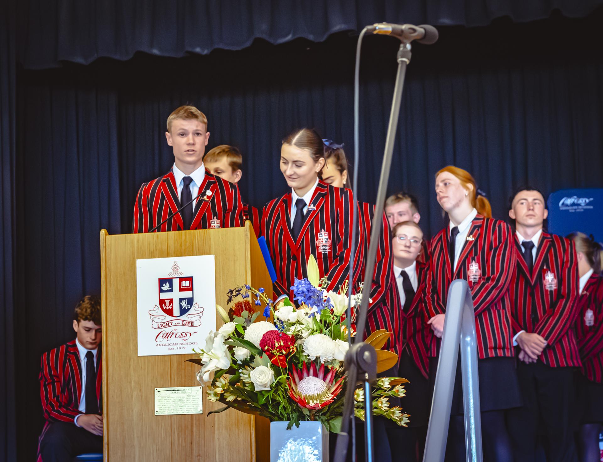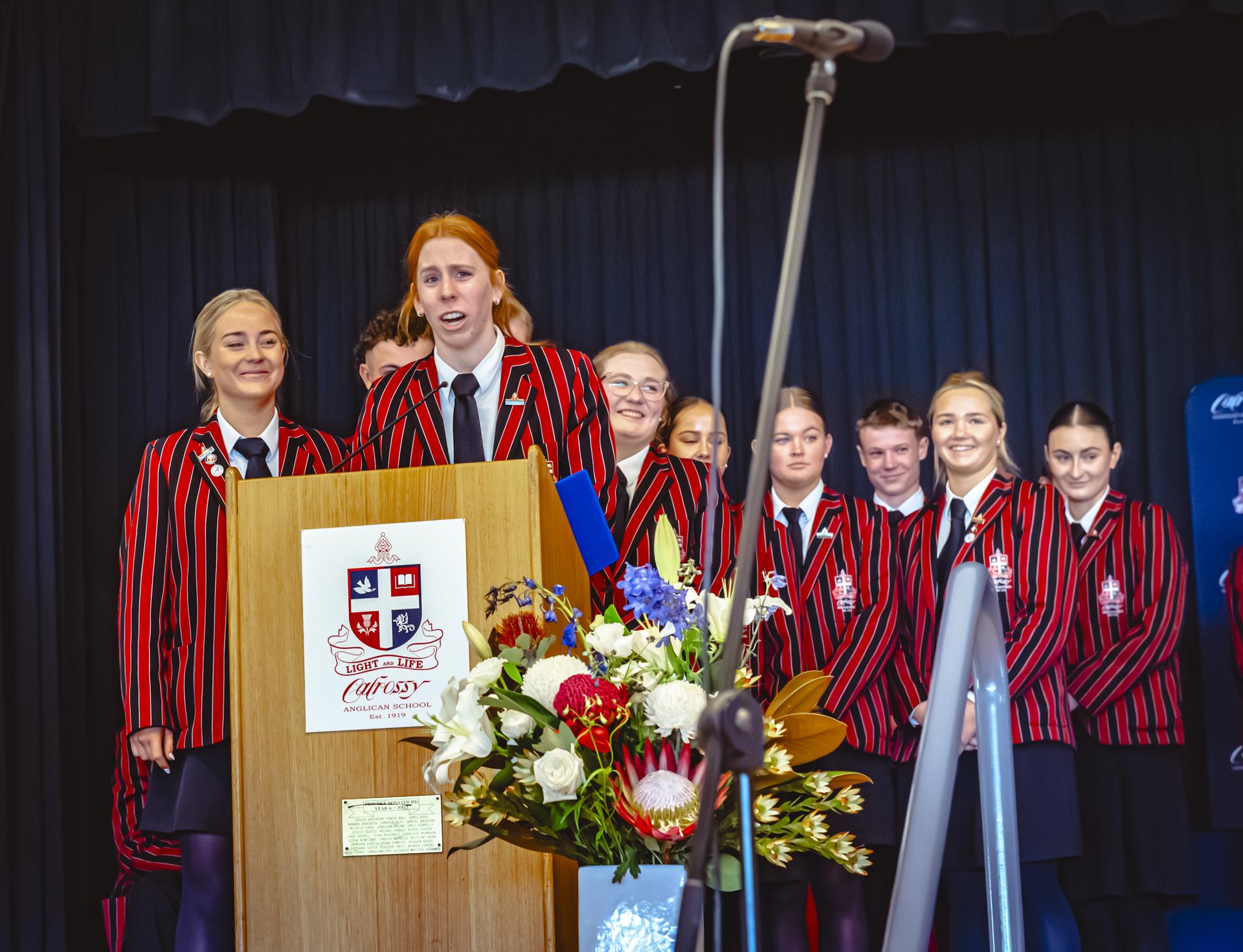 Year 6 student Layla Robertson delivered a respectful Acknowledgement of Country, honouring the traditional custodians of the land. Claire Fisher, incoming 2026 Chapel Prefect, followed with a Bible reading, offering encouragement and spiritual grounding for the day’s reflections.