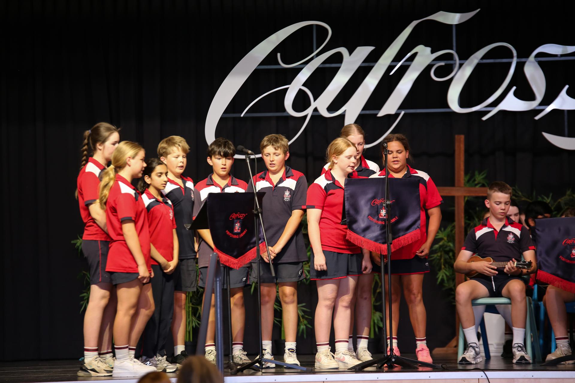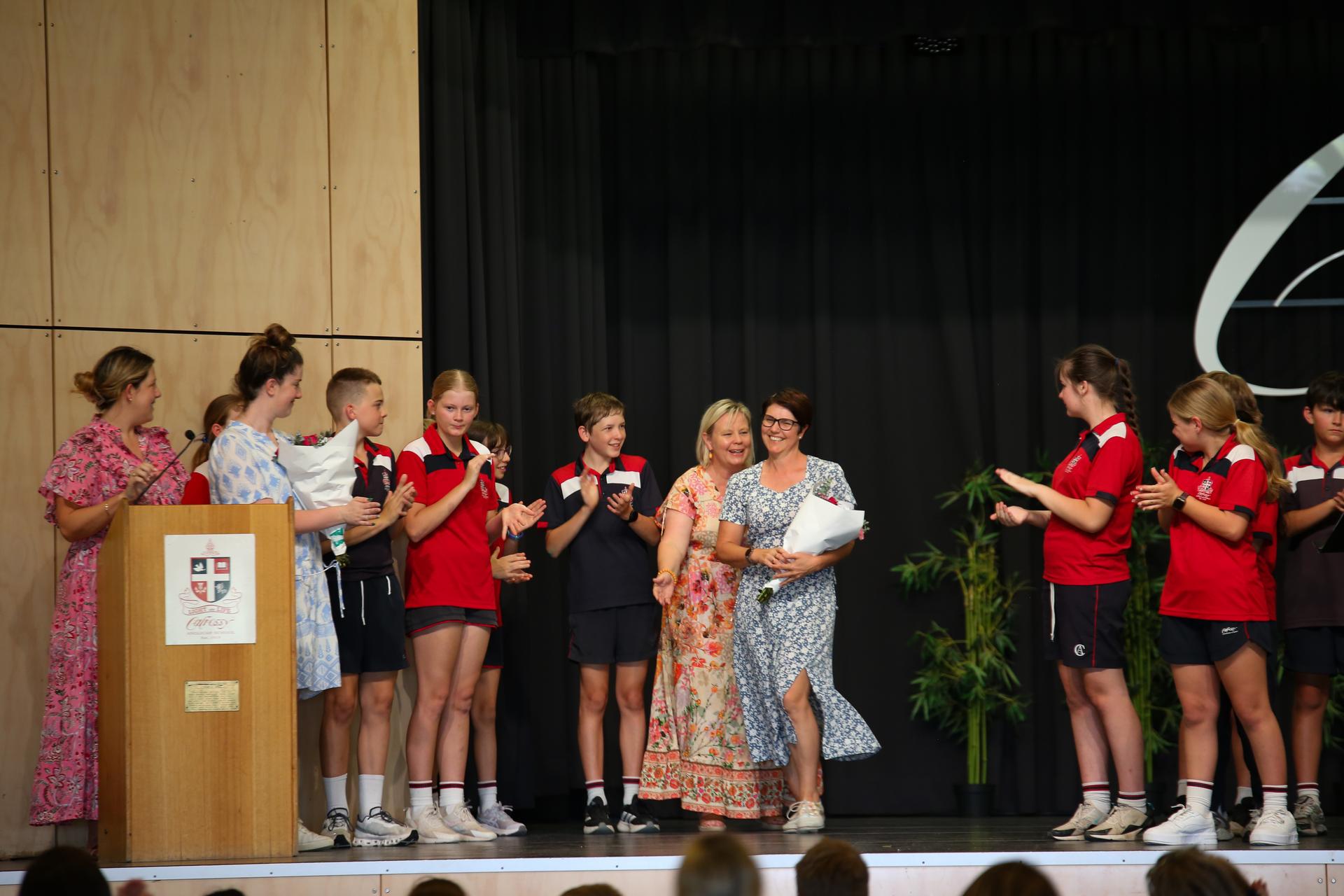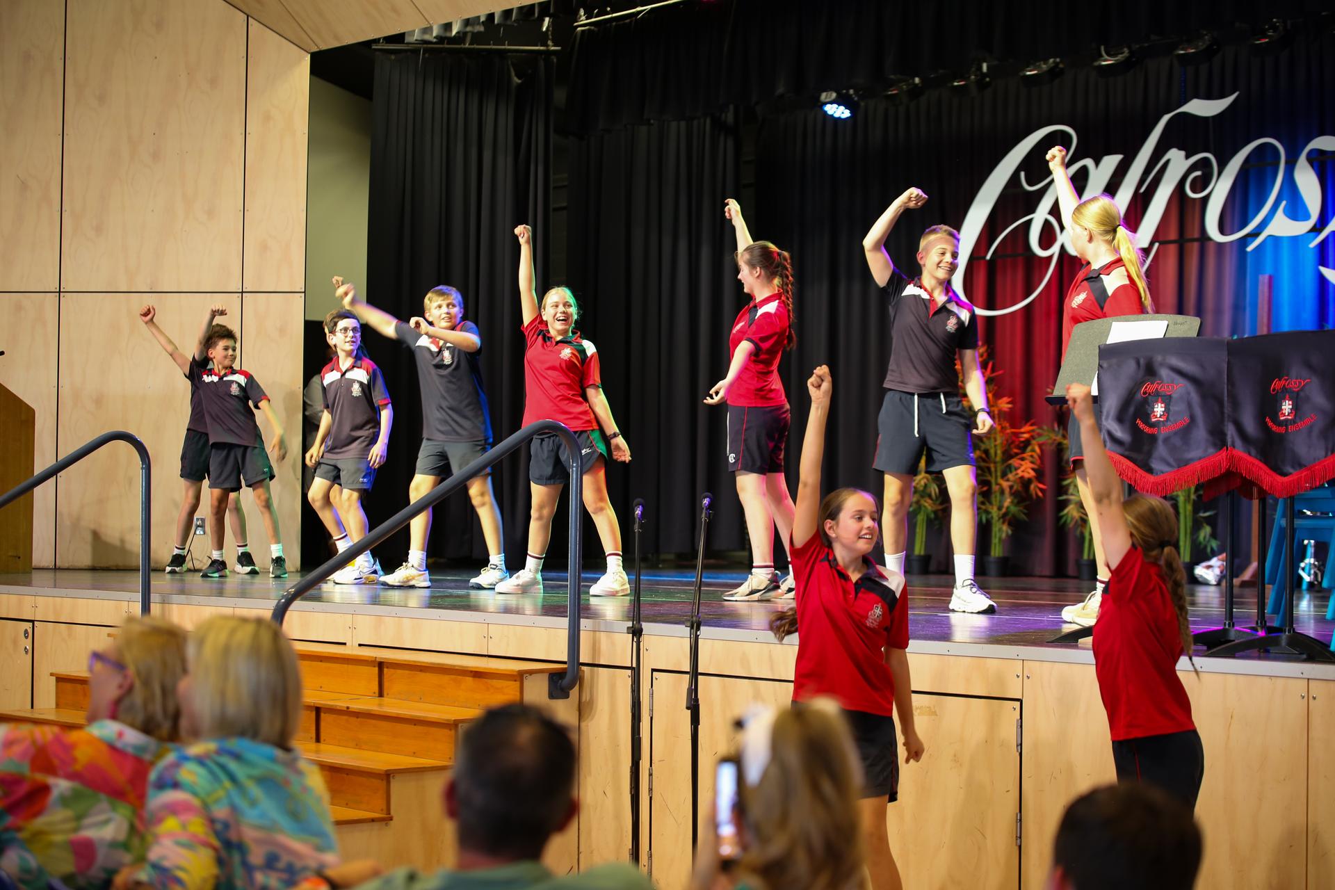 As the assembly came to a close, the entire Year 6 cohort took the stage one final time to perform a revised version of “Hey Soul Sister” , complete with custom lyrics reflecting their years at Calrossy. It was heartfelt, funny, and full of joy—just like the students themselves. The performance was followed by a final, symbolic walk out of the hall , cheered on by students and staff alike.