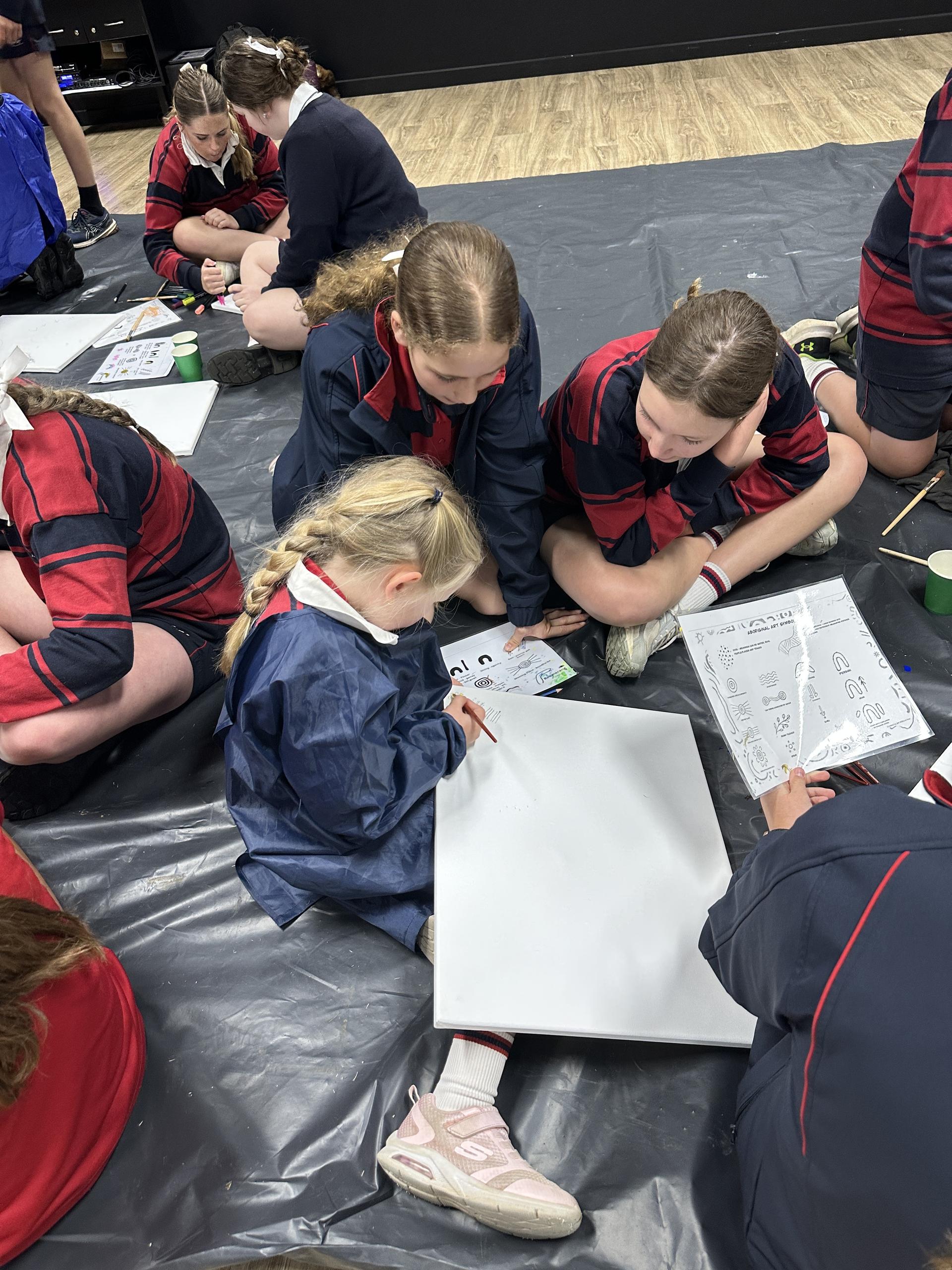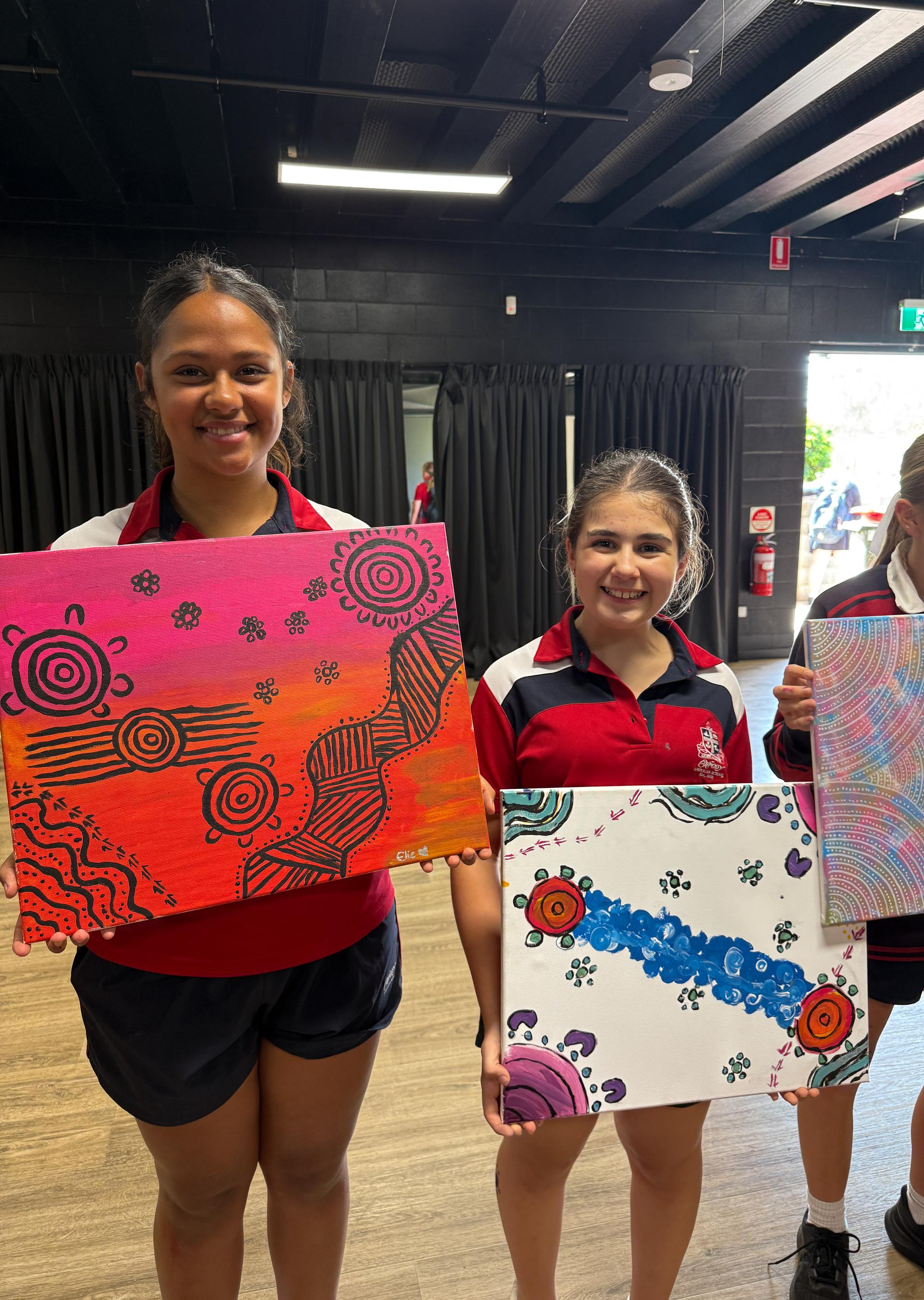 Through guided workshops, students explored the cultural significance behind Aboriginal art—learning not just how to paint, but why symbols, styles and stories matter. From the youngest in Kindergarten through to students in Year 11, everyone had the chance to connect with Country, reflect on their identity, and express their stories through art.