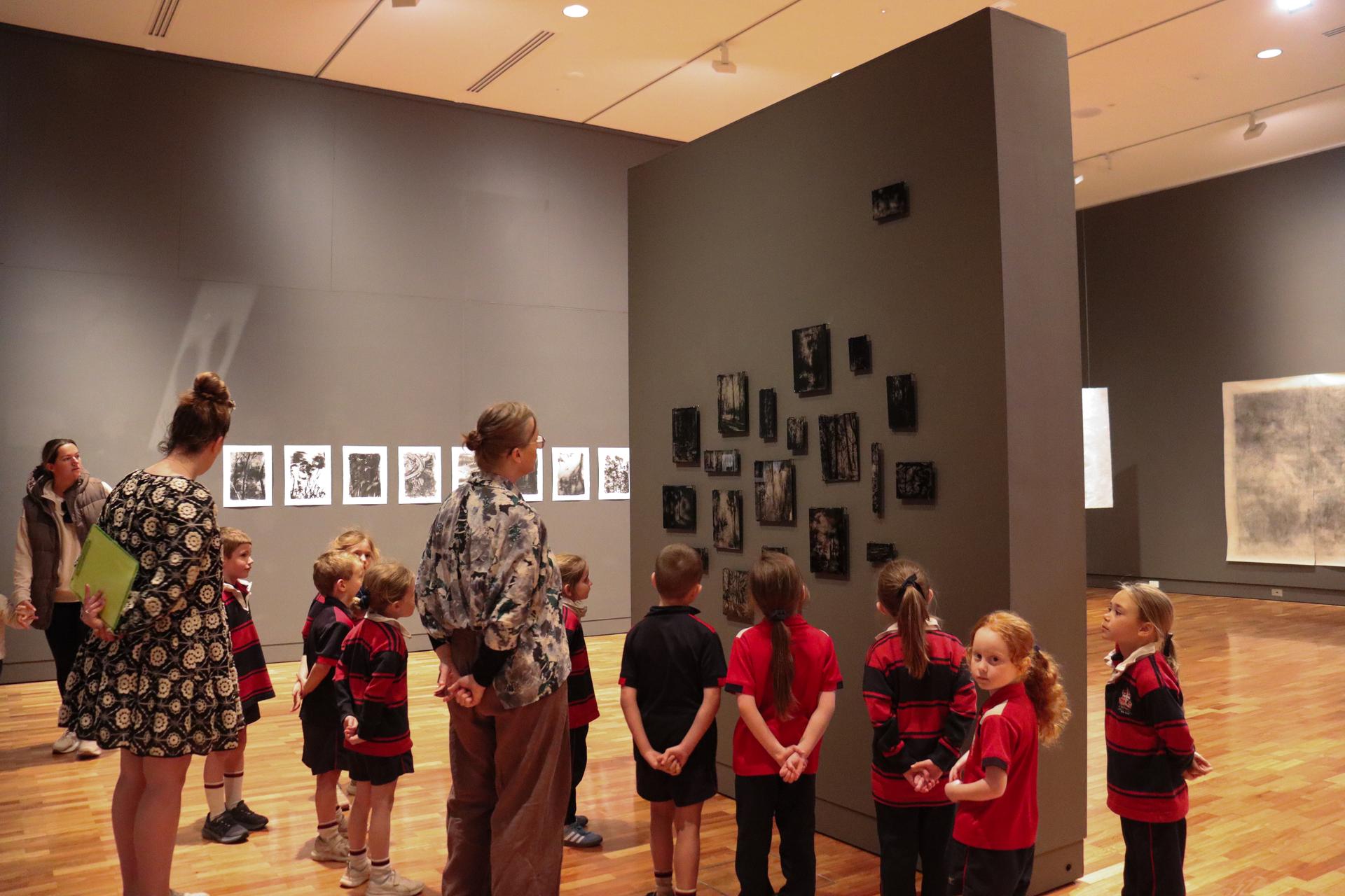 In the "For Our Elders" exhibition, curated by the Gomeroi Culture Academy, students explored artworks, photographs, carvings, language and weaving that honoured the legacies of Aboriginal Elders. This experience deeply supported learning in both History—exploring how stories from the past are communicated through different forms—and Geography, as students considered the significance of Country and place for Aboriginal and Torres Strait Islander Peoples.