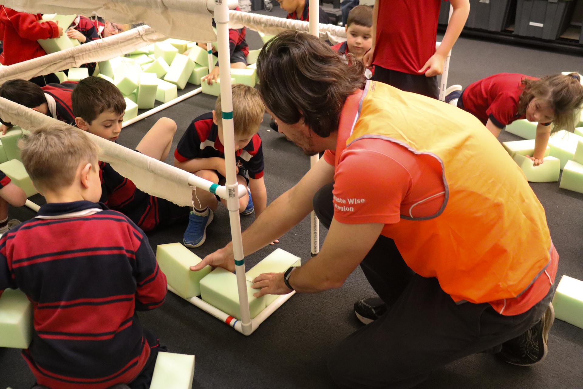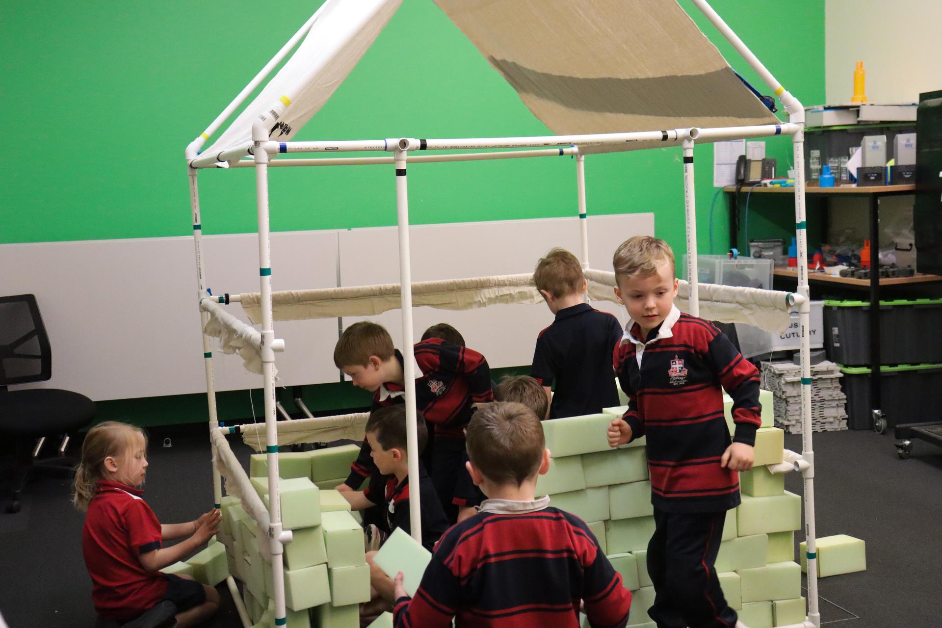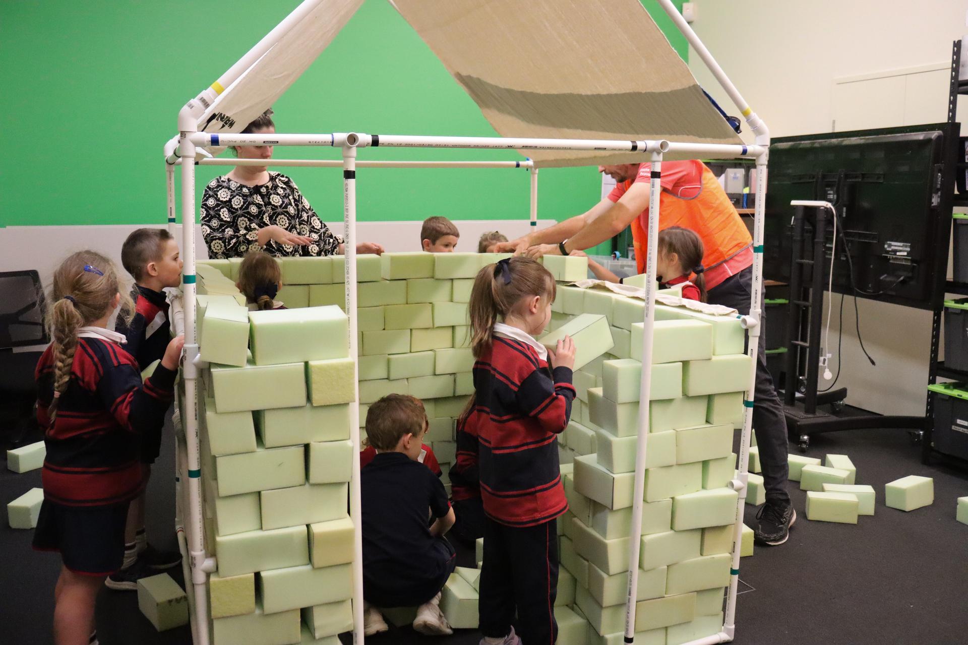 In the Innovation Studio, students worked together to construct a single house using foam blocks—carefully laying the ‘foundation’ to ensure stability and strength, just like real bricklayers. Inside, they used their imagination to design a floor plan and build a small cubby house within the larger structure. This creative and collaborative activity supported learning in the Mathematics unit on "Position" and Science & Technology’s "Make Your Move", while encouraging problem-solving, spatial awareness and teamwork through purposeful, hands-on exploration.