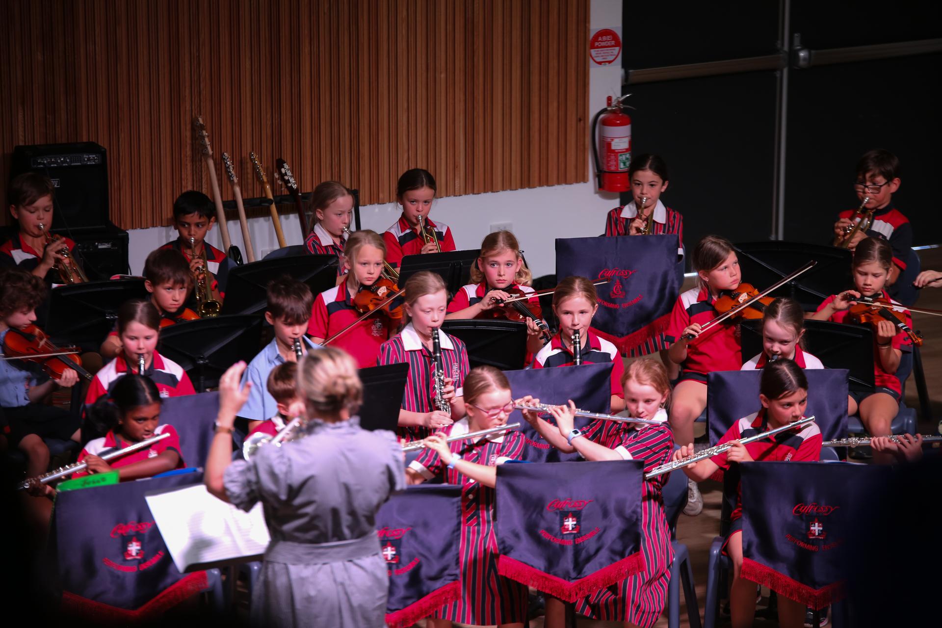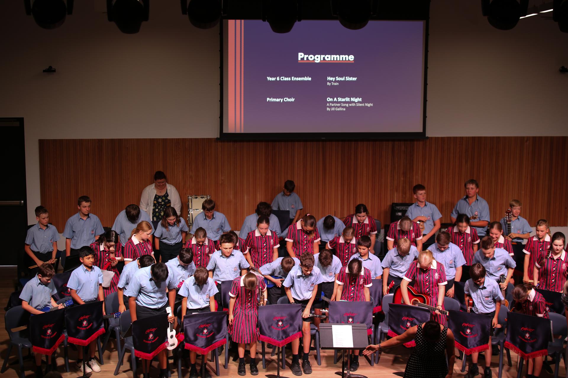 Students from across Calrossy’s Junior School recently came together for their 2025 Music Showcase, held in the Dr Ted Giblin OAM Centre Auditorium on the William Cowper Campus. The event was a formal presentation of learning from throughout the year and featured a range of class and ensemble performances.