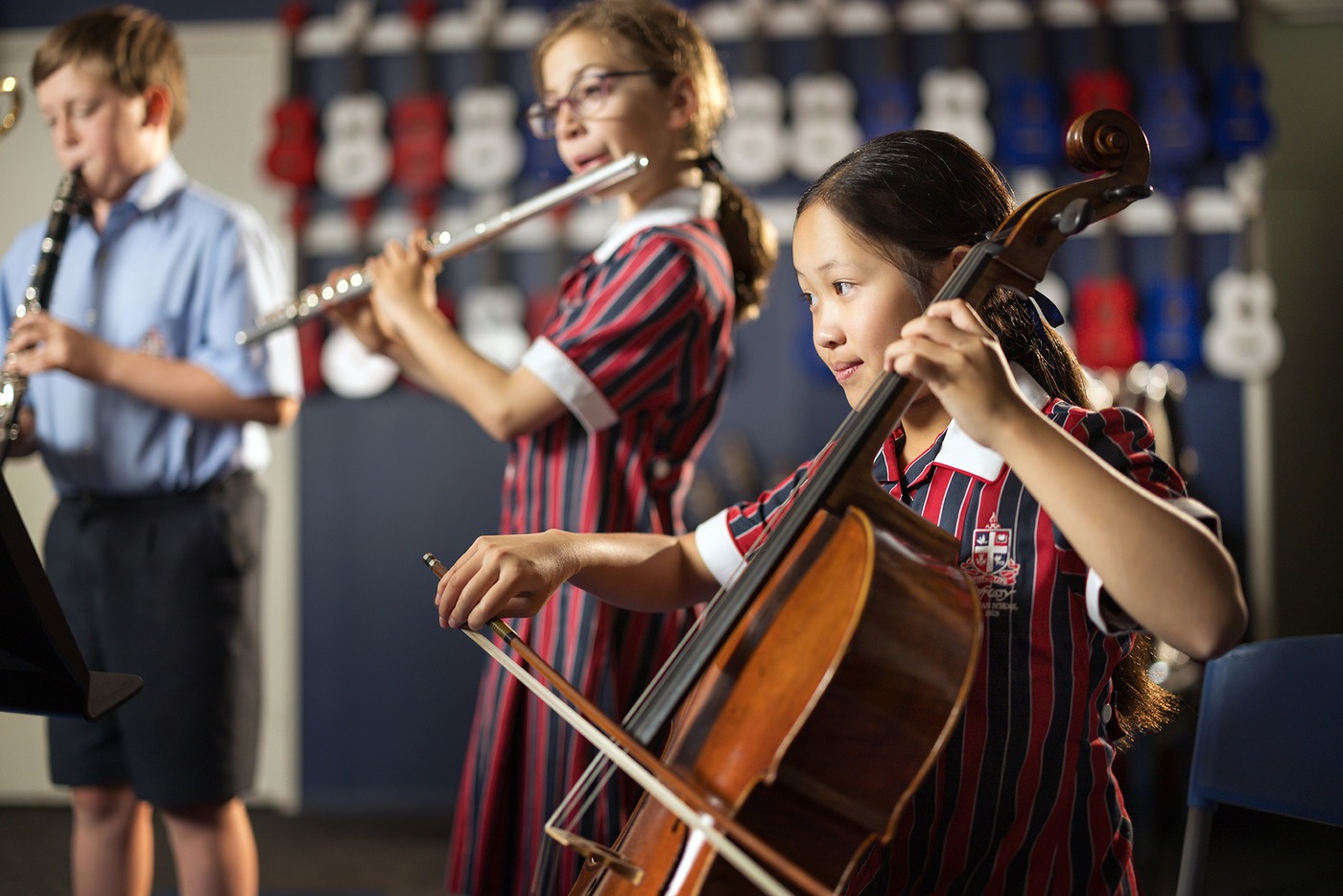 Beginning in Year 3, students have the chance to learn instruments through small group tutorials, selecting from violin, cello, trumpet, flute, clarinet, guitar, piano, and more. Performance is a cornerstone of the program, with students participating in choirs, the Junior Concert Band, and other ensembles.