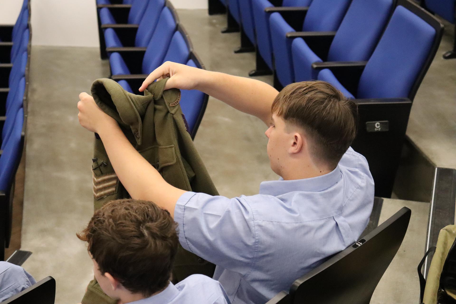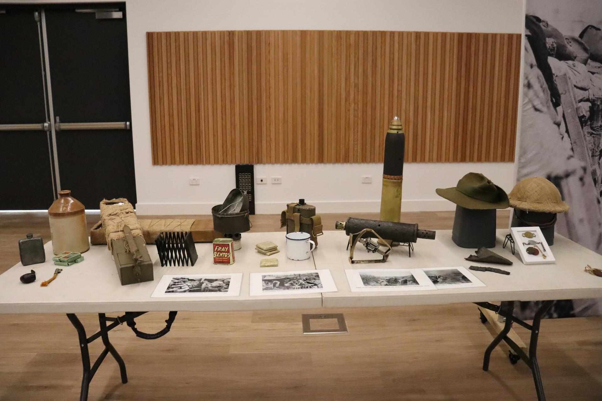 Held in the Auditorium of the Dr. Ted Giblin OAM Centre, the session offered students a hands-on exploration of life in the trenches between 1916 and 1918. With nearly 100 original and replica artefacts on display, students were able to examine and handle items including trench tools, weapons, personal kits, gas protection gear, food rations, uniforms and communication equipment.
