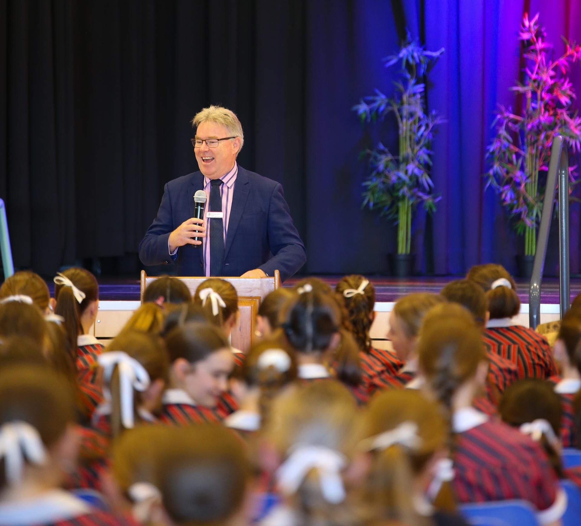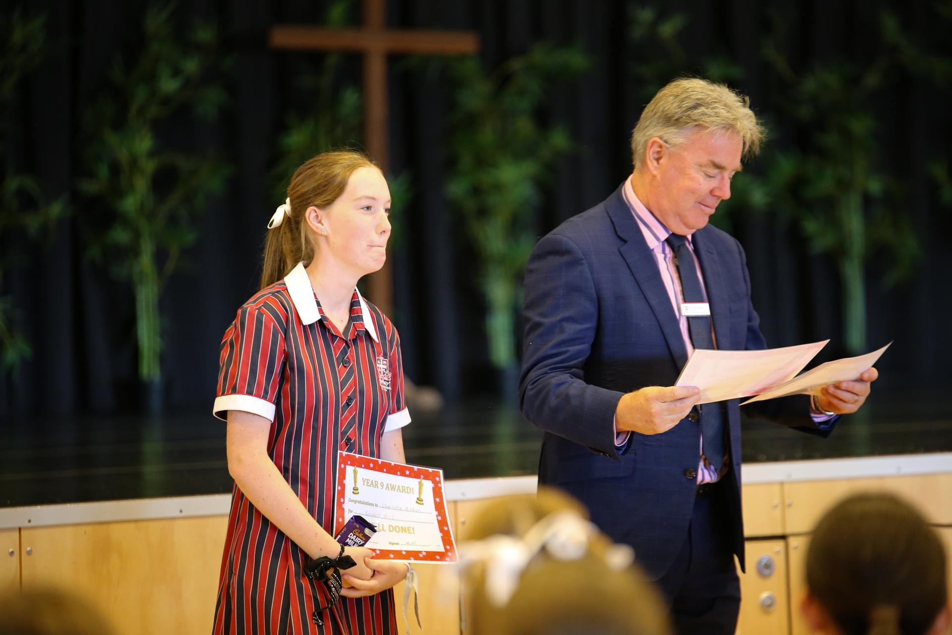 Principal David Smith opened the assembly by acknowledging the leadership and positive influence the Year 9 cohort has had on the wider Calrossy 7–9 community. He commended them for living out the School’s core values—Resilience, Selflessness, Integrity, and Inclusiveness—not only in leadership roles but in everyday actions that contributed to a strong and supportive culture.
