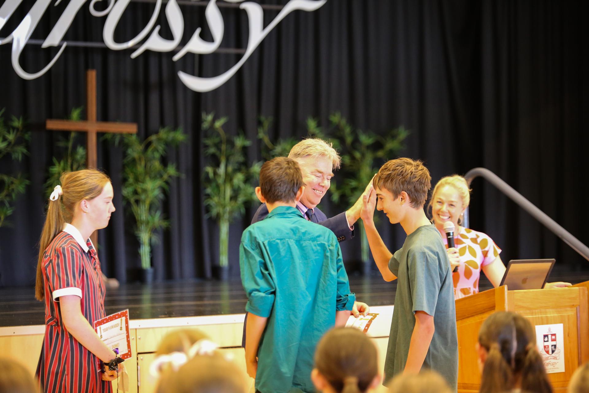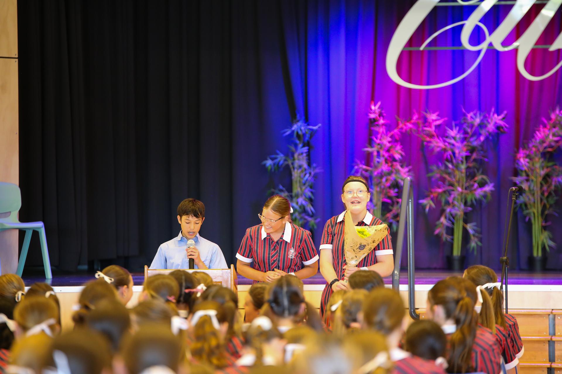 The assembly was rich with student voice. Year 7 leaders Nellie Tink and William Yeo described how the Year 9s transformed from “scary giants” into trusted role models and “the best friends we didn’t know we needed.” They shared how the Year 9s showed them that being part of a team meant more than winning carnivals, and even gave a shout-out to their surfing skills and boarding lunch line protection.