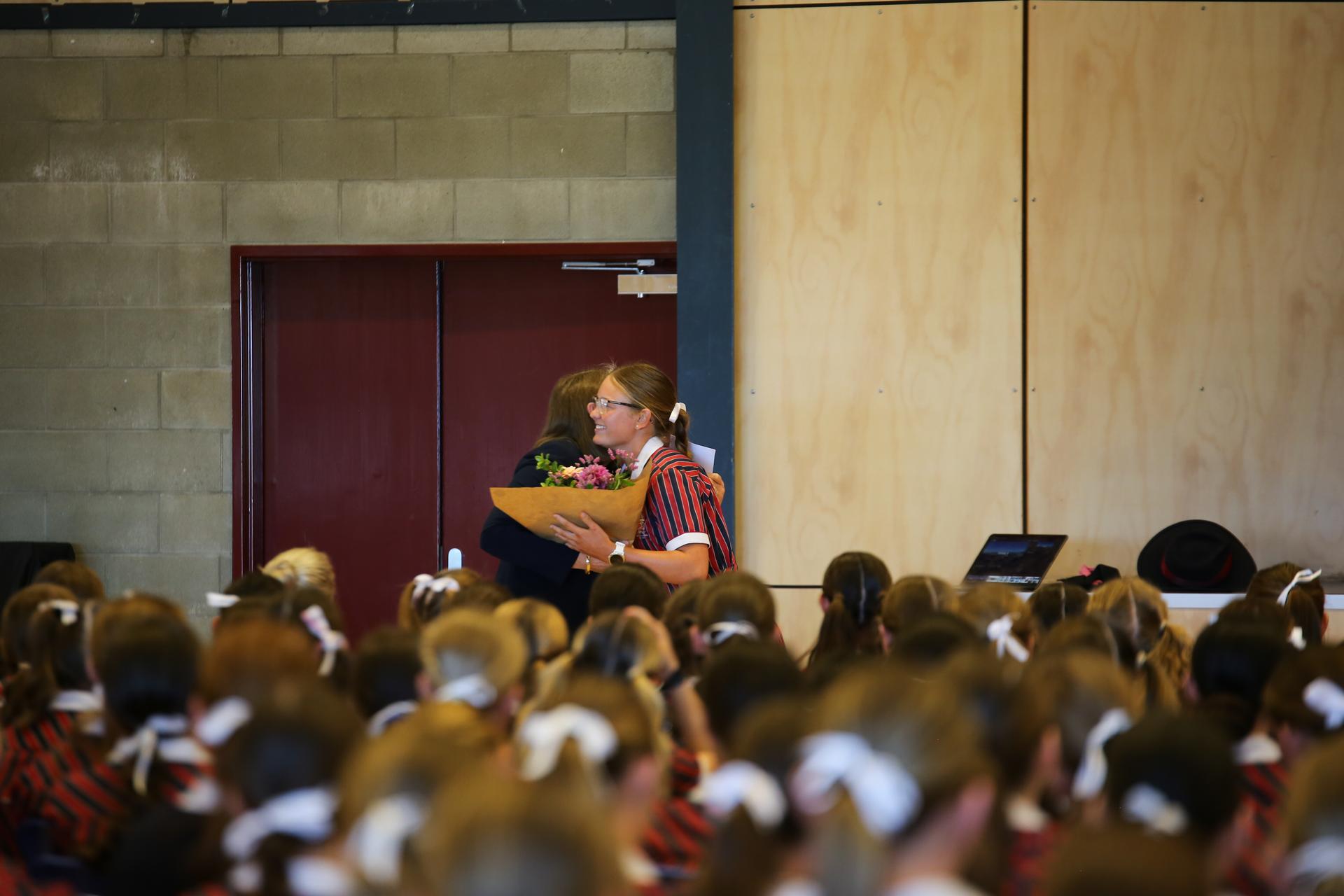 To close the formalities, students presented heartfelt gifts of appreciation to Mrs Bath, Mrs Murrie and Mr Starr in thanks for their guidance and support. In true Calrossy spirit, Mr Anderson received a farewell gift of a straw hat—a playful nod to the Middle School’s most talked-about sun safety rule.